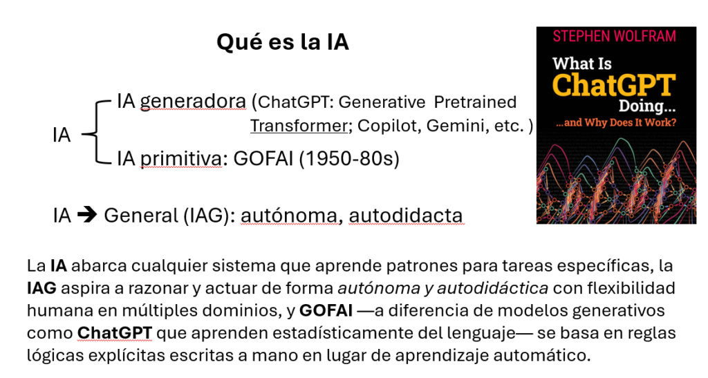 La inteligencia artificial generadora —como ChatGPT y otros modelos de lenguaje— es un tipo de sistema informático diseñado para producir contenido nuevo: textos, imágenes, código, música o ideas, a partir de patrones aprendidos en grandes cantidades de información.